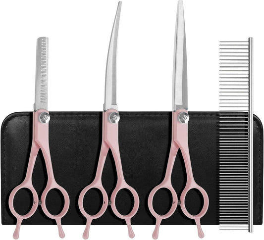 Professional Dog Grooming Scissors Set, 5 in 1 Dog Grooming Scissors Kit, Curved